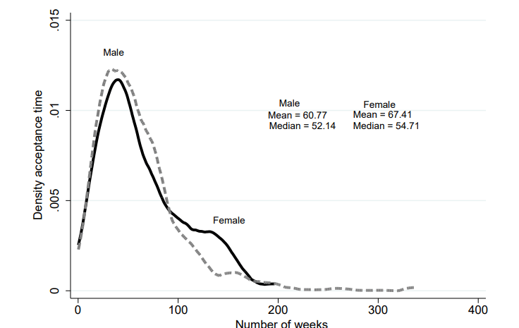 - Female-authored articles take longer to be accepted—even after controlling for quality, productivity, and institutional affiliation.